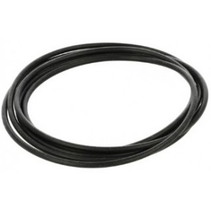 • Cabo ou tubo flexível preto enrolado em círculo sobre fundo branco