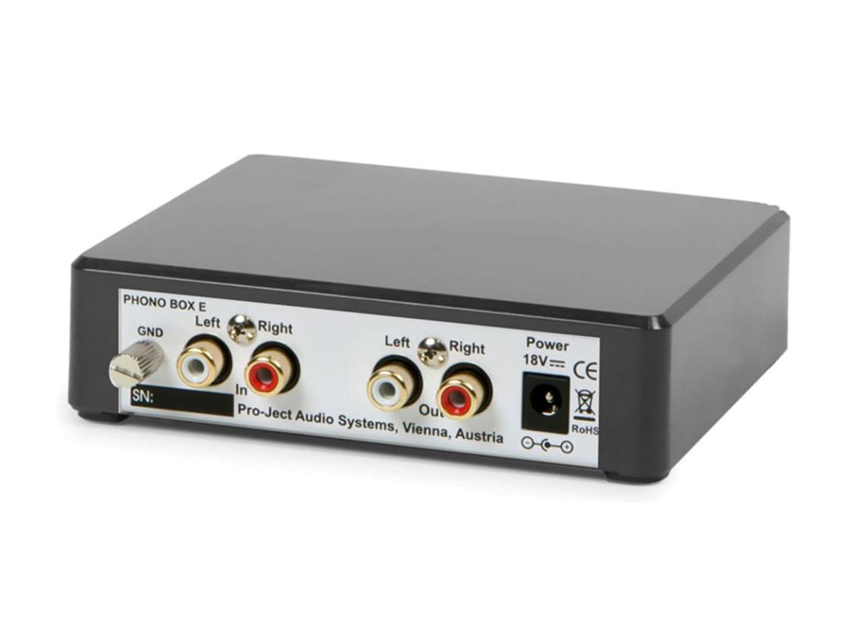O Pro-ject Phono Box E é uma solução acessível e de alta qualidade que permite a ligação de qualquer gira-discos com células tipo MM a um amplificador que possua apenas entradas de linha, ou cuja entrada "phone" seja de má qualidade.
